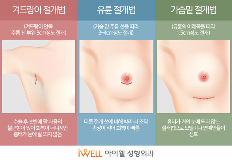 절개법은 3가지정돈데, 제일 흔한건 겨절,가슴밑절같아요 !