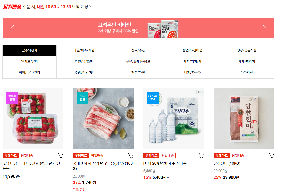 핸드폰 어플 "롯데마트몰" 을 설치하시면 매일 새로운 할인품목들을 한눈에 확인 하실 수 있습니다