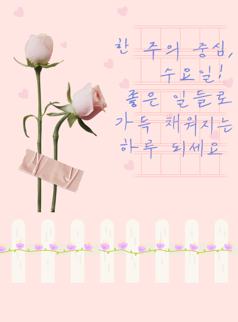 "벌써 수요일이라니, 이번 주도 순삭이네요! 오늘도 파이팅~ ♥"