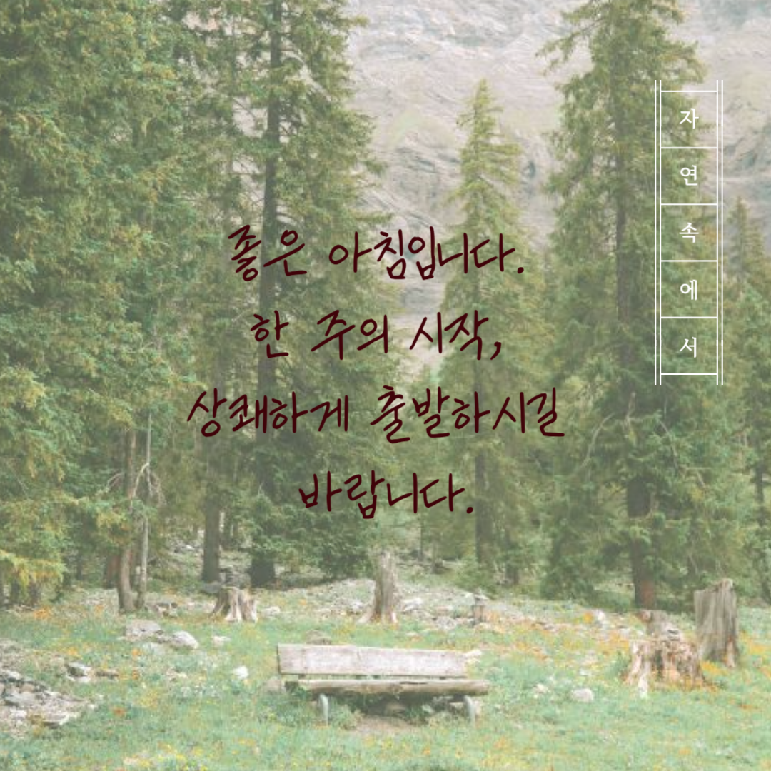 - 좋은 아침입니다. 한 주의 시작, 상쾌하게 출발하시길 바랍니다.