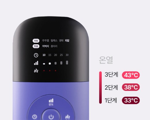 리모컨 보면 온열기능, 모드설정, 시간설정, 강도설정 다 가능합니다!